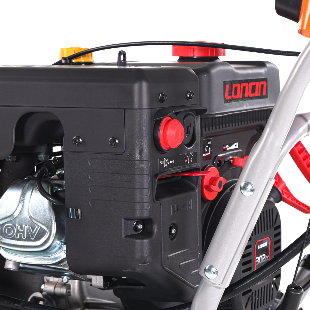 На снегоуборщик 7654E установлен четырехтактный бензиновый двигатель с воздушным охлаждением LONCIN G250FDS мощностью 7,1 л.с. Двигатель разработан специально для эксплуатации при низких температурах. Защищен от промерзания, обледенения и попадания снежной пыли. Характеризуется легким запуском, экономичным потреблением топлива, низким уровнем шума и вибраций. Рекомендуемое топливо - бензин не ниже Аи-92. Не допускается использовать топливо низкого качества! Из-за этого могут выйти из строя детали двигателя.