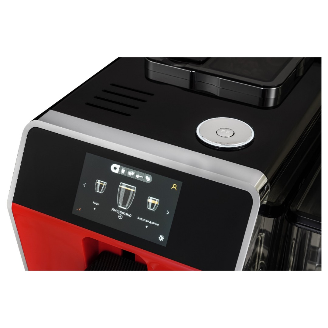 Кофемашина KACM 2005 Diva, выполненная в красном цвете, имеет 35 автопрограмм для приготовления напитков. Кроме того, она предлагает свыше двухсот индивидуальных настроек с возможностью их сохранения. Выбор напитка и настройки, включая подбор объема кофе и молочной пены, осуществляется на цветном сенсорном дисплее. Автоматический капучинатор позволяет готовить напитки с молоком нажатием одной кнопки. Он работает в паре с независимым контейнером для молока обёъемом 500 мл, который можно хранить в холодильнике. Разборная конструкция значительно упрощает обслуживание и продлевает срок службы прибора. Для дополнительного удобства кофемашиной можно управлять как при помощи сенсорного дисплея, так и при помощи дискового джойстика. Регулировка высоты дозатора для чашки также производится вручную, что позволяет готовить напитки в посуде с разными размерами.