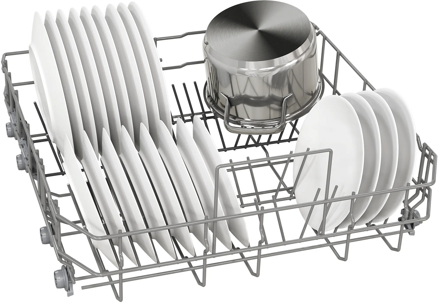 Посудомоечная машина BOSCH SMV25EX02E Series 2 SilencePlus обладает габаритами 81,5х59,8х55 см и вмещает до 13 комплектов посуды. Она размещается на трех уровнях: кроме двух основных коробов, предусмотрен отдельный лоток VarioDrawer для столовых приборов. Вода подается с пяти уровней, что обеспечивает равномерный охват всего внутреннего пространства и высокое качество мойки класса А. Верхний короб можно регулировать по высоте, что позволит разместить «крупногабаритную» посуду.