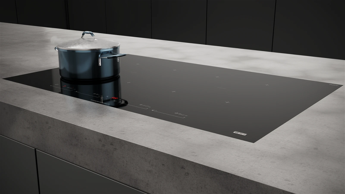 Секрет индукционных варочных панелей – энергия передается только нижней части кастрюли. Благодаря прямой передаче тепла к дну посуды, продукты нагреваются за очень короткое время, при этом прибор потребляет мало электричества. Так как сами варочные зоны не нагреваются, то попавшая на них еда не пригорает.