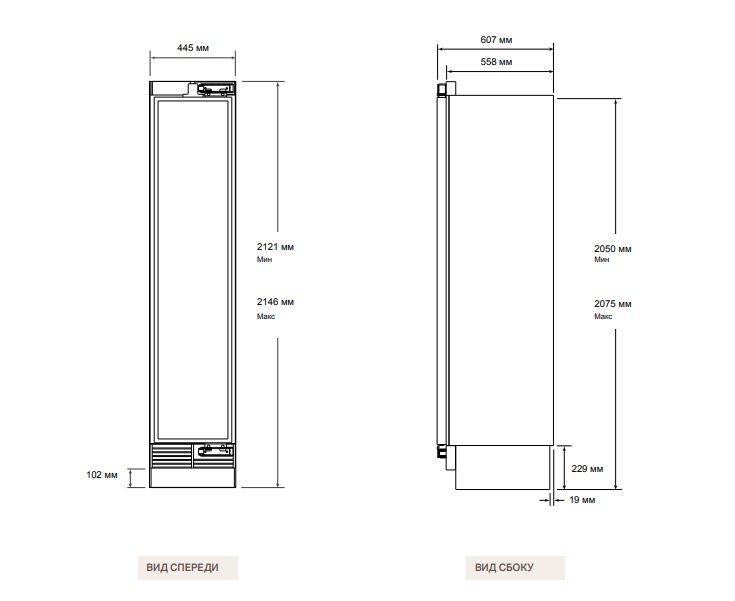 Морозильные камеры доступны шириной 45 см или 60 см, оснащены встроенным диспенсером льда. Сочетаются с моделями холодильных камер, позволяя создавать уникальные решения.