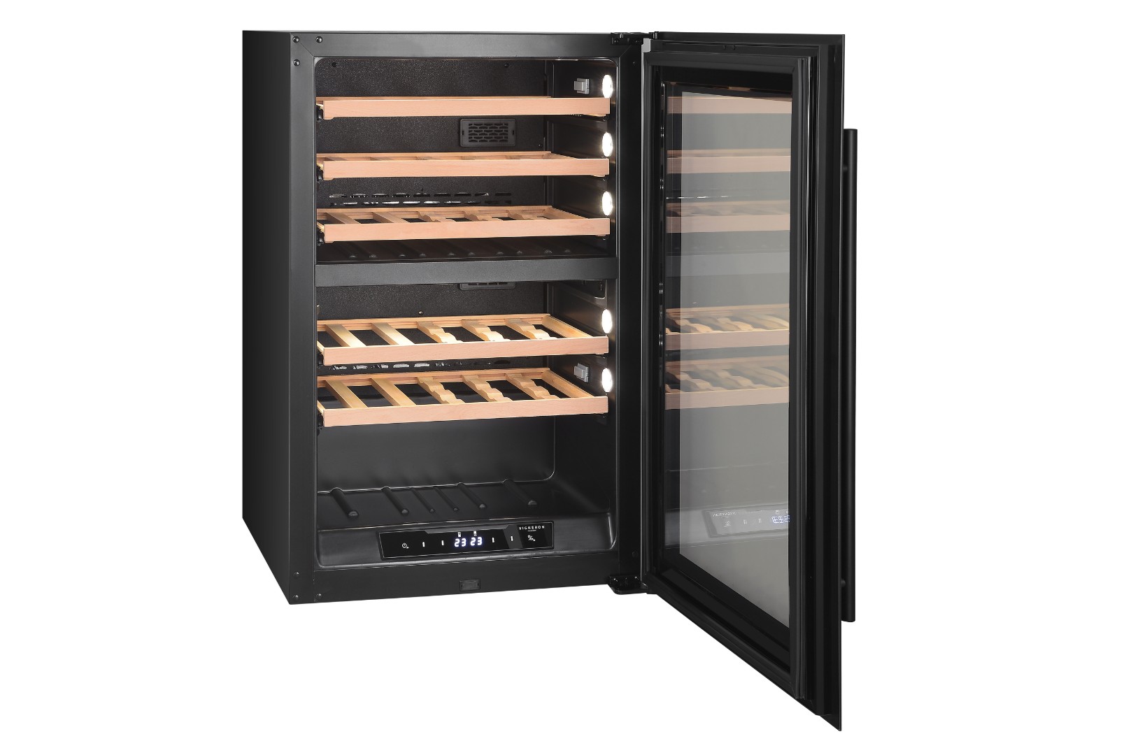 - Реверсивная дверь, которая позволяет устанавливать два винных шкафа рядом;